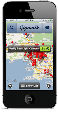 Using an iPhone app [iTunes link], Gigwalk members — or “Gigwalkers” — sign up to complete tasks near them in exchange for between $3 and $90 per task.
